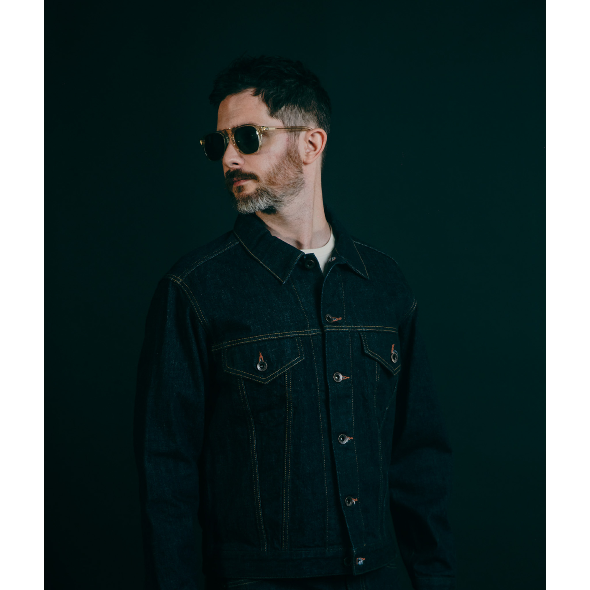 通常メタルフレームが多いティアドロップをアセテートで落とし込み表現。
