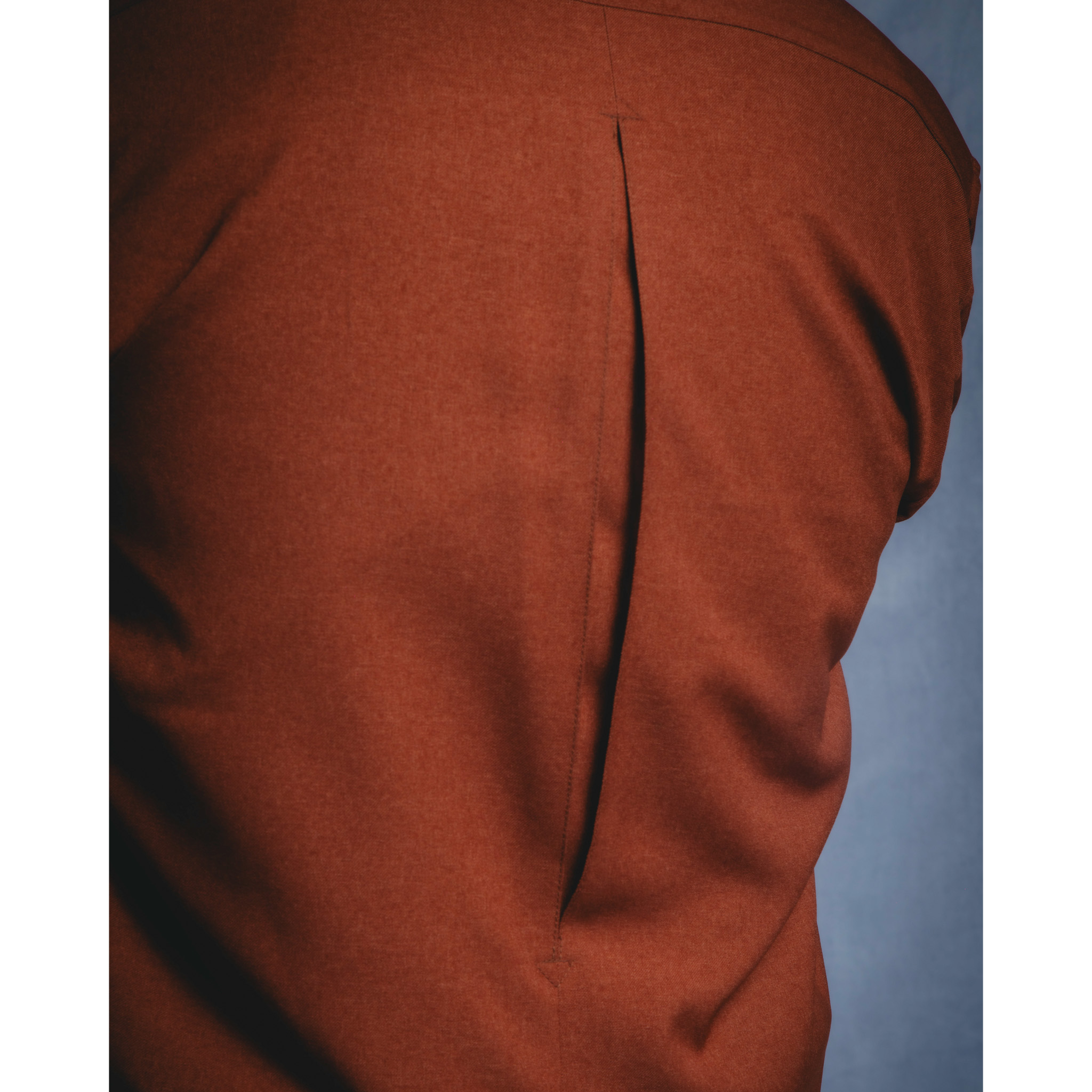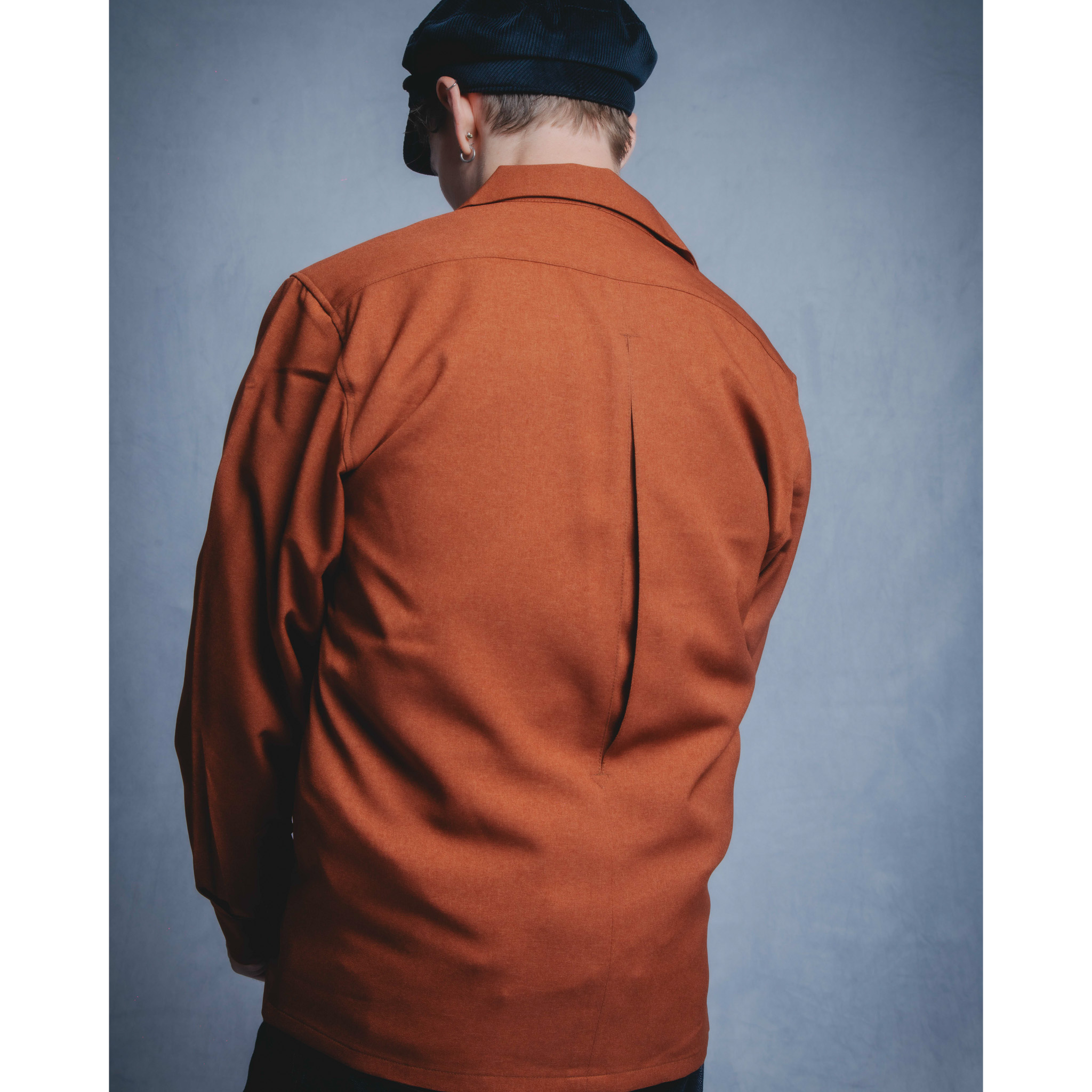 背面にジャックナイフプリーツが配備されたオープンカラー シャツ。