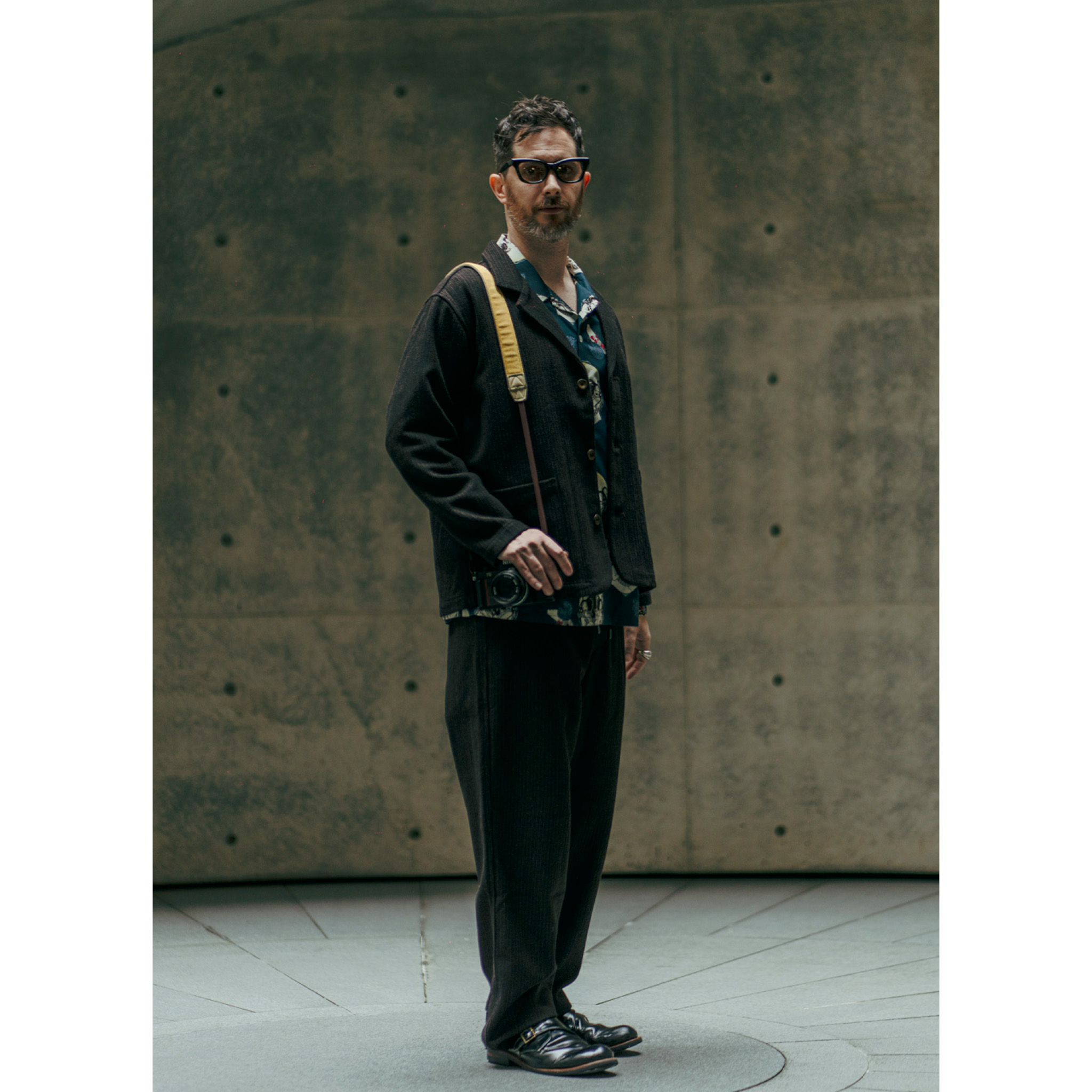 クラシカルな刺し子ツイード生地を使用した、セットアップパンツ。