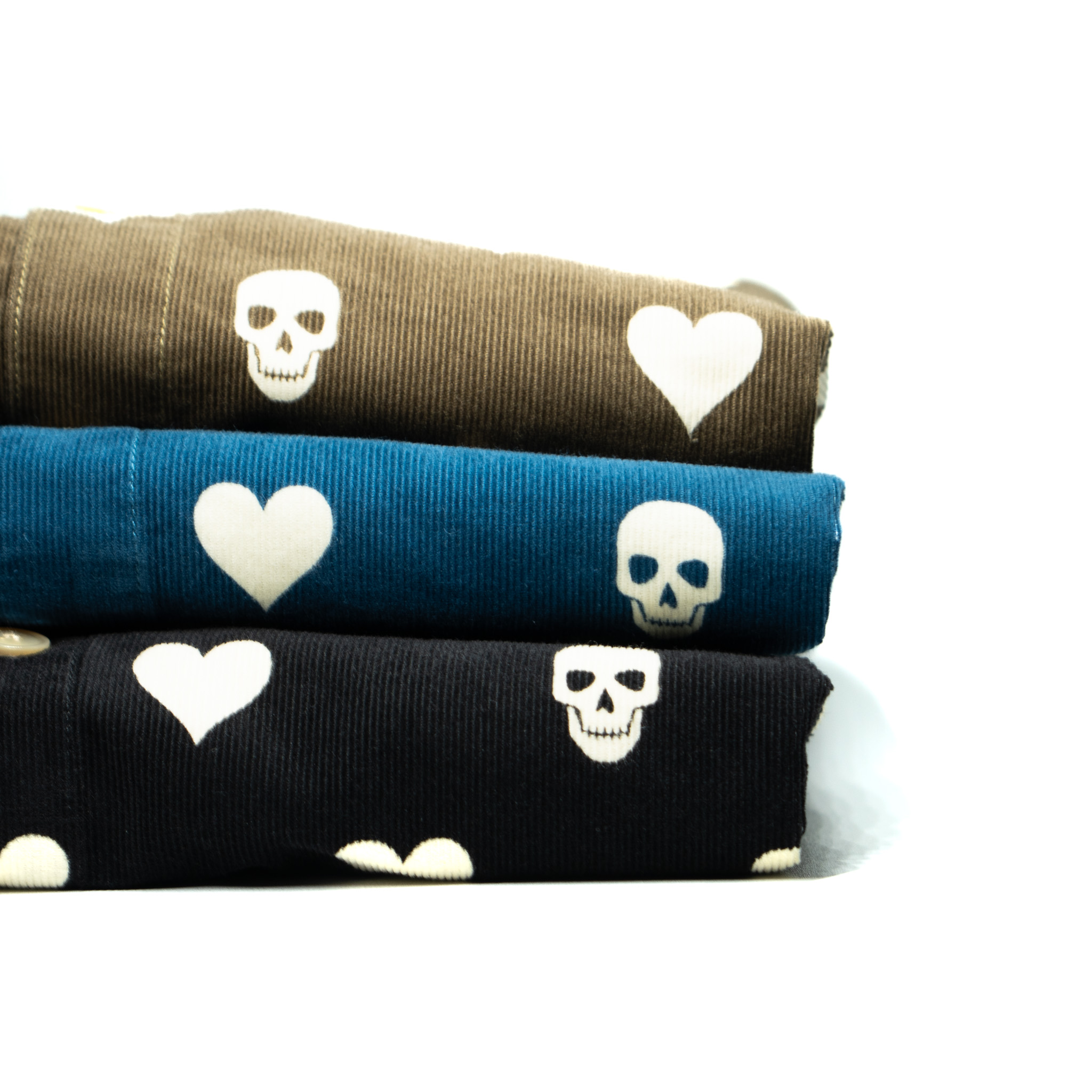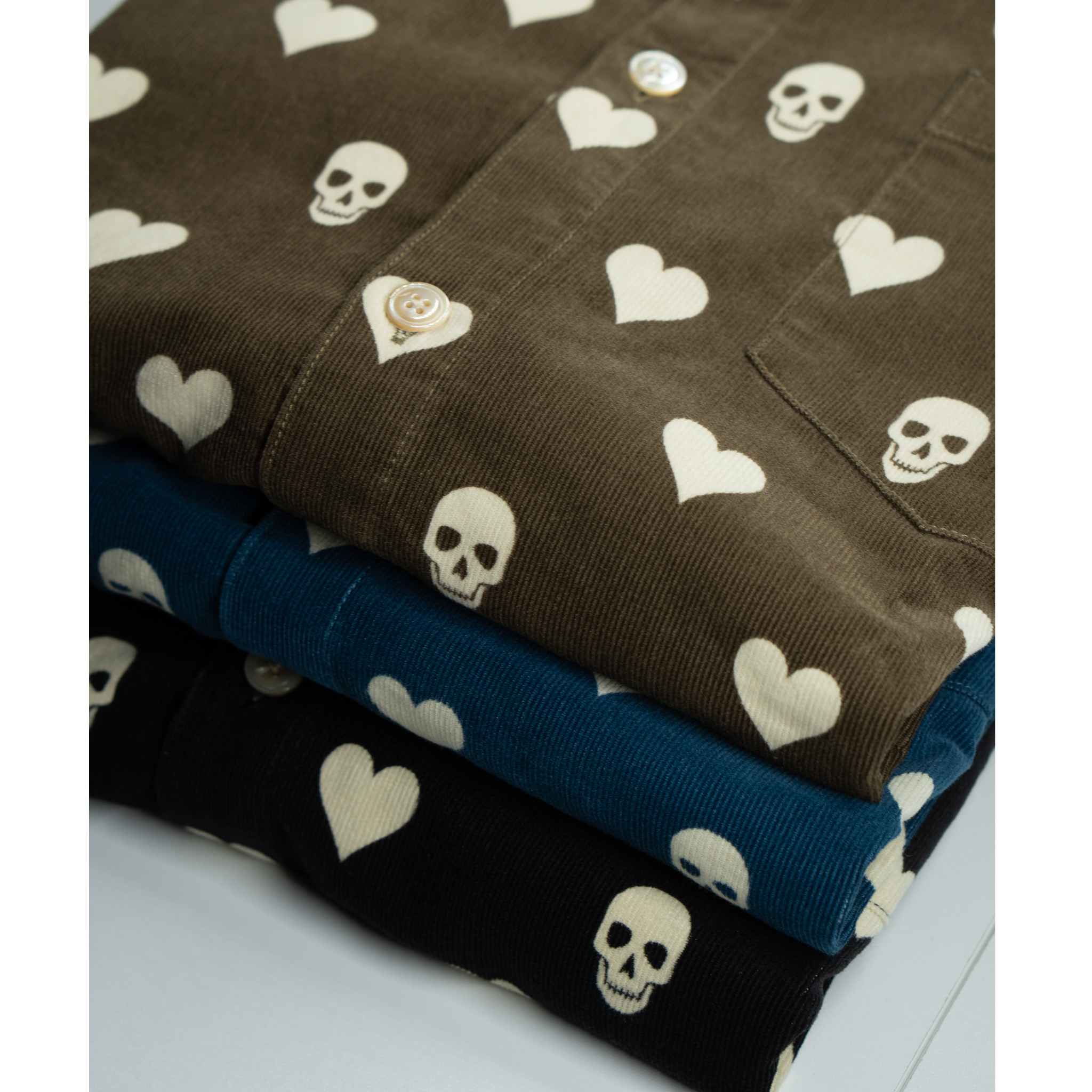 HEART SKULL をオリジナルシャツコールにプリントした ボタンダウンシャツ。