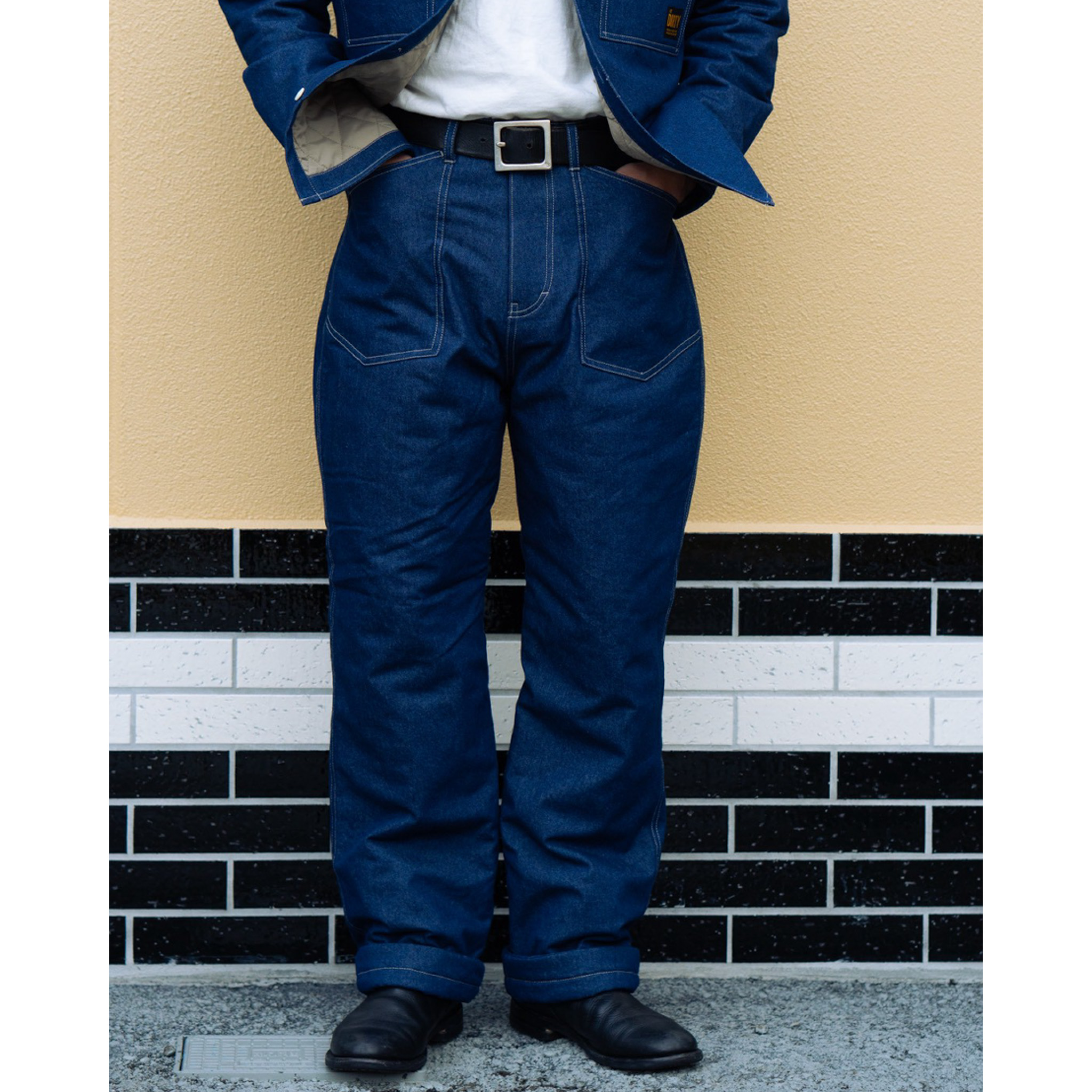 ミリタリーのBAKER PANTSをベースに、インナーにキルティングを施して仕上げた。