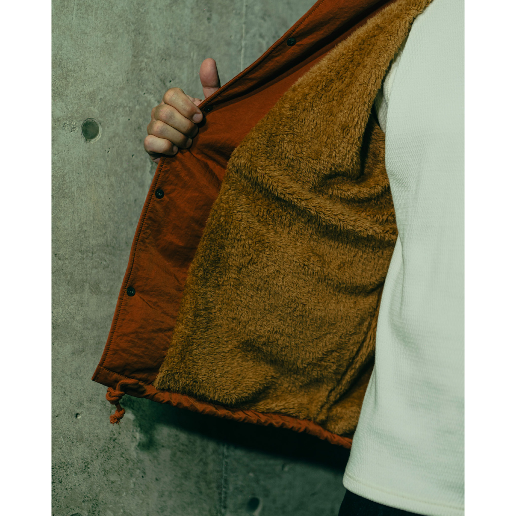 ポケット袋はフリース仕様で製作。