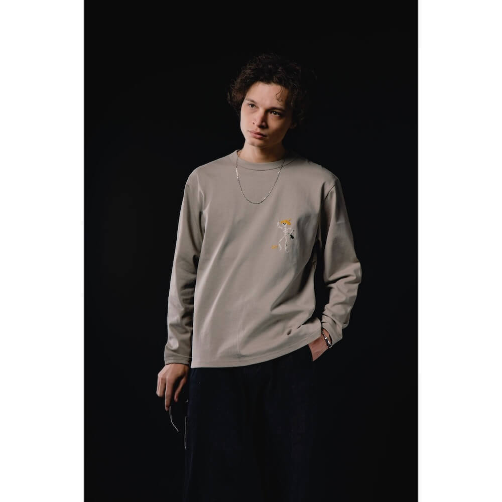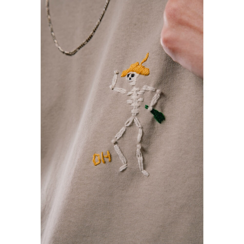 DRESS HIPPY/DH-HEAVY L/S TEE hand-embroidered skull (L.BROWN)