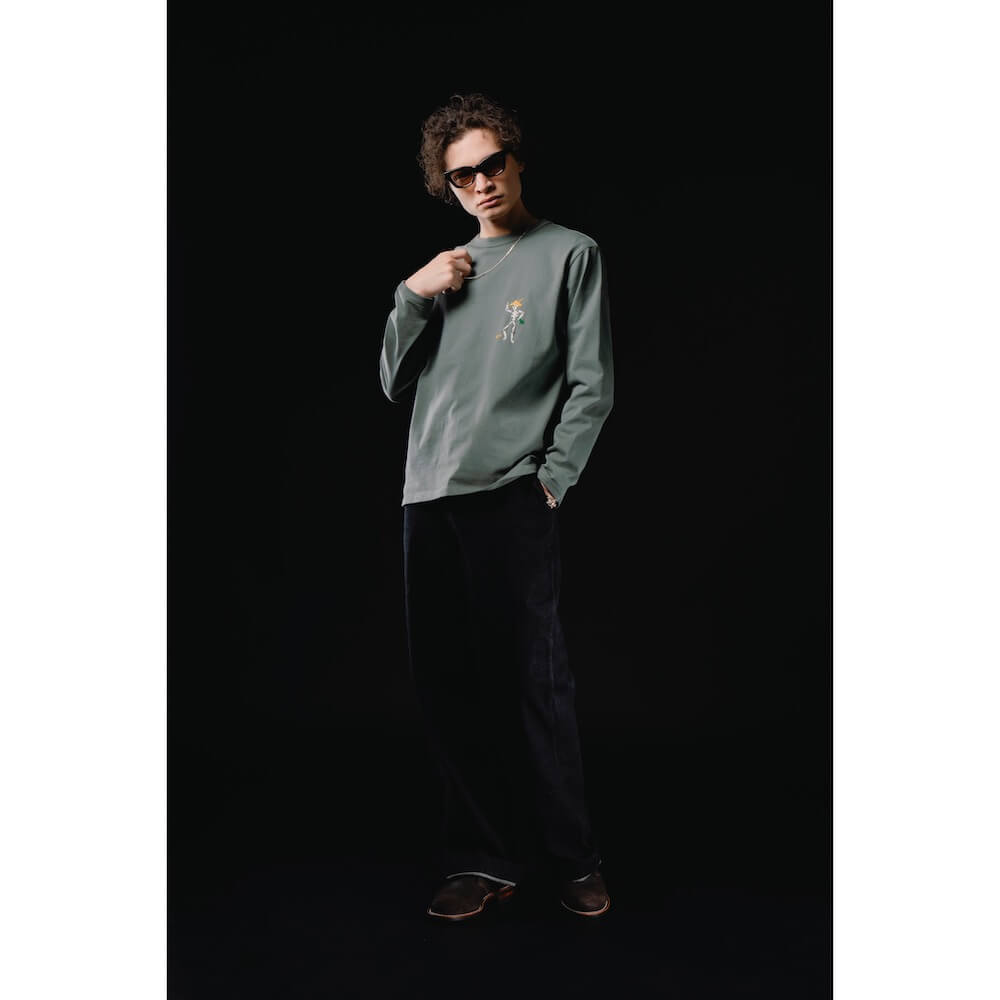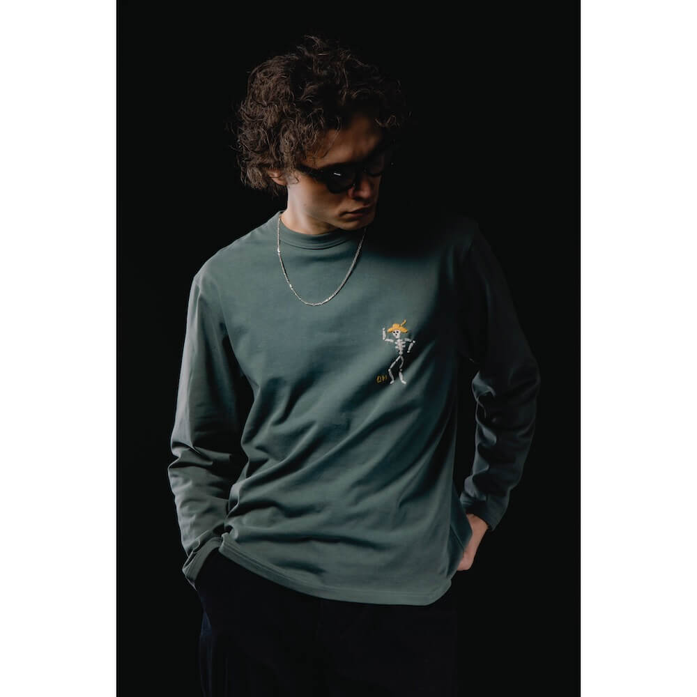 DRESS HIPPY/DH-HEAVY L/S TEE hand-embroidered skull (GRAY)