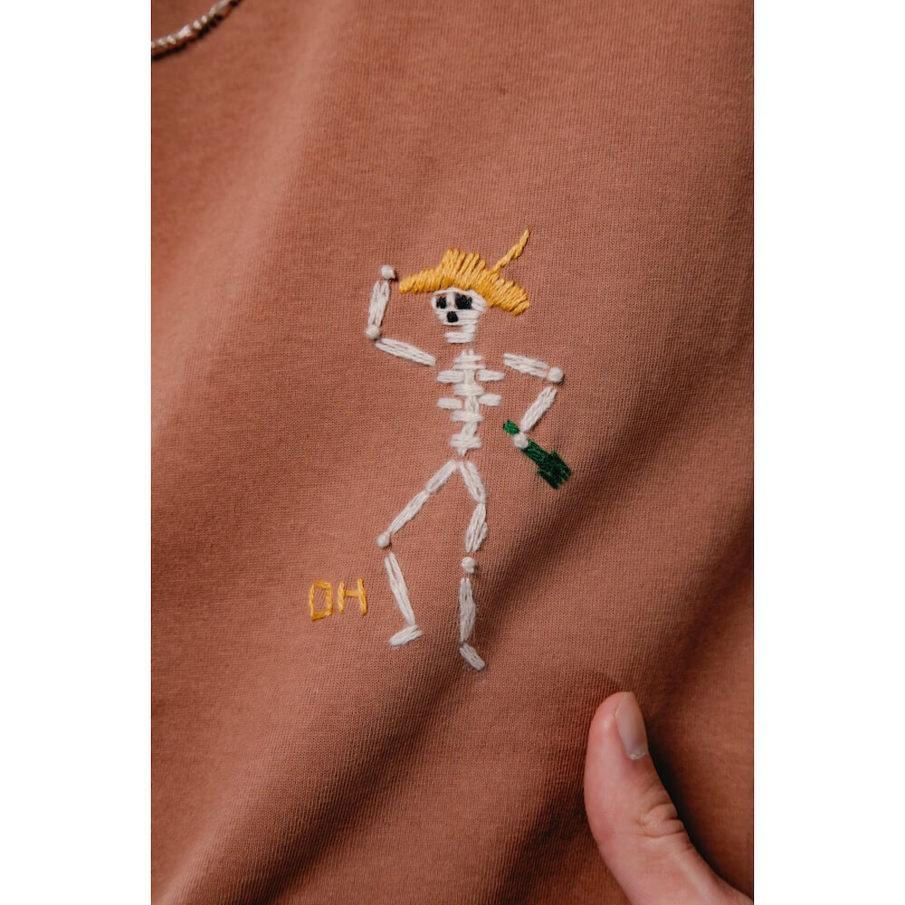 DRESS HIPPY/DH-HEAVY L/S TEE hand-embroidered skull (BLUE GREEN)