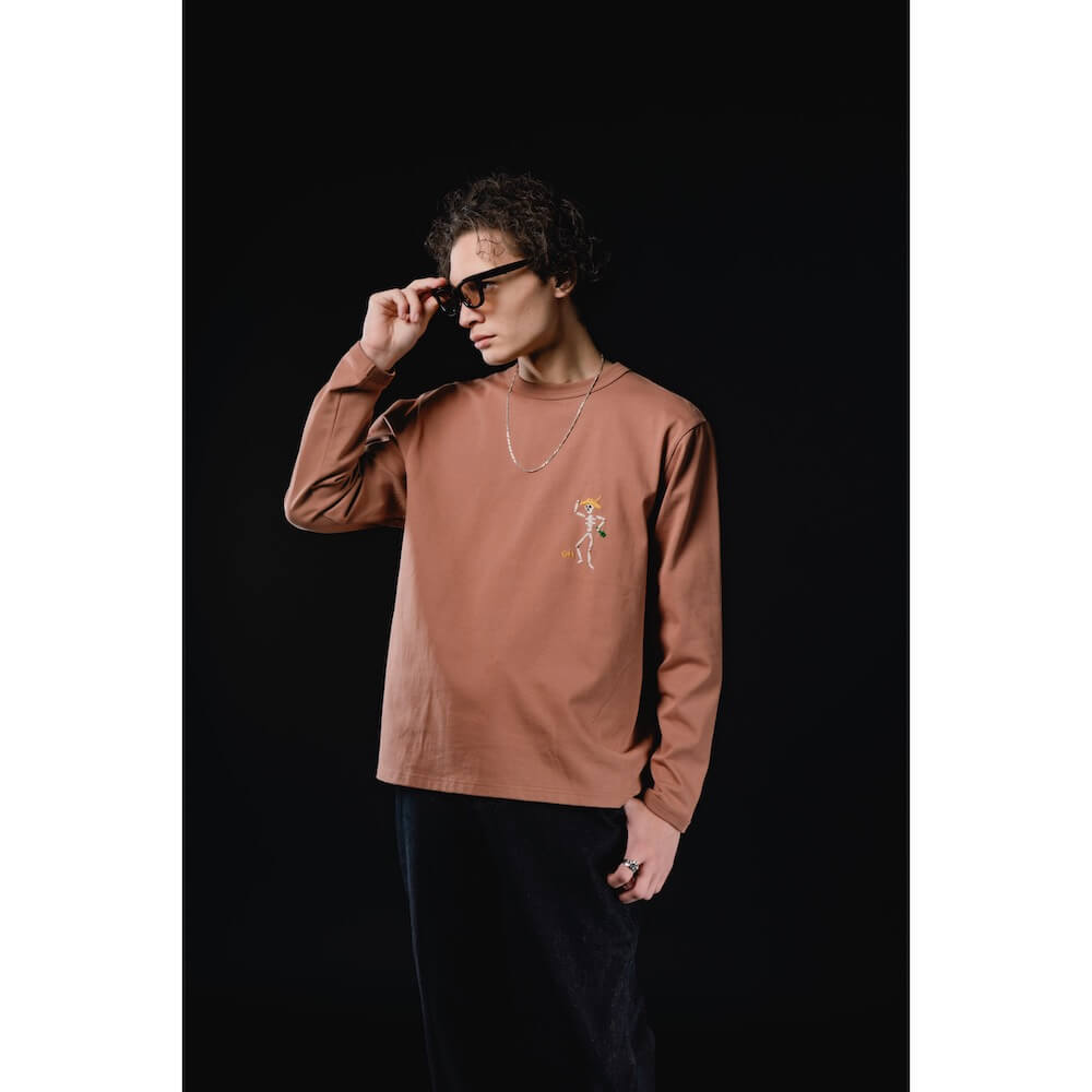 DRESS HIPPY/DH-HEAVY L/S TEE hand-embroidered skull (S.BLACK)