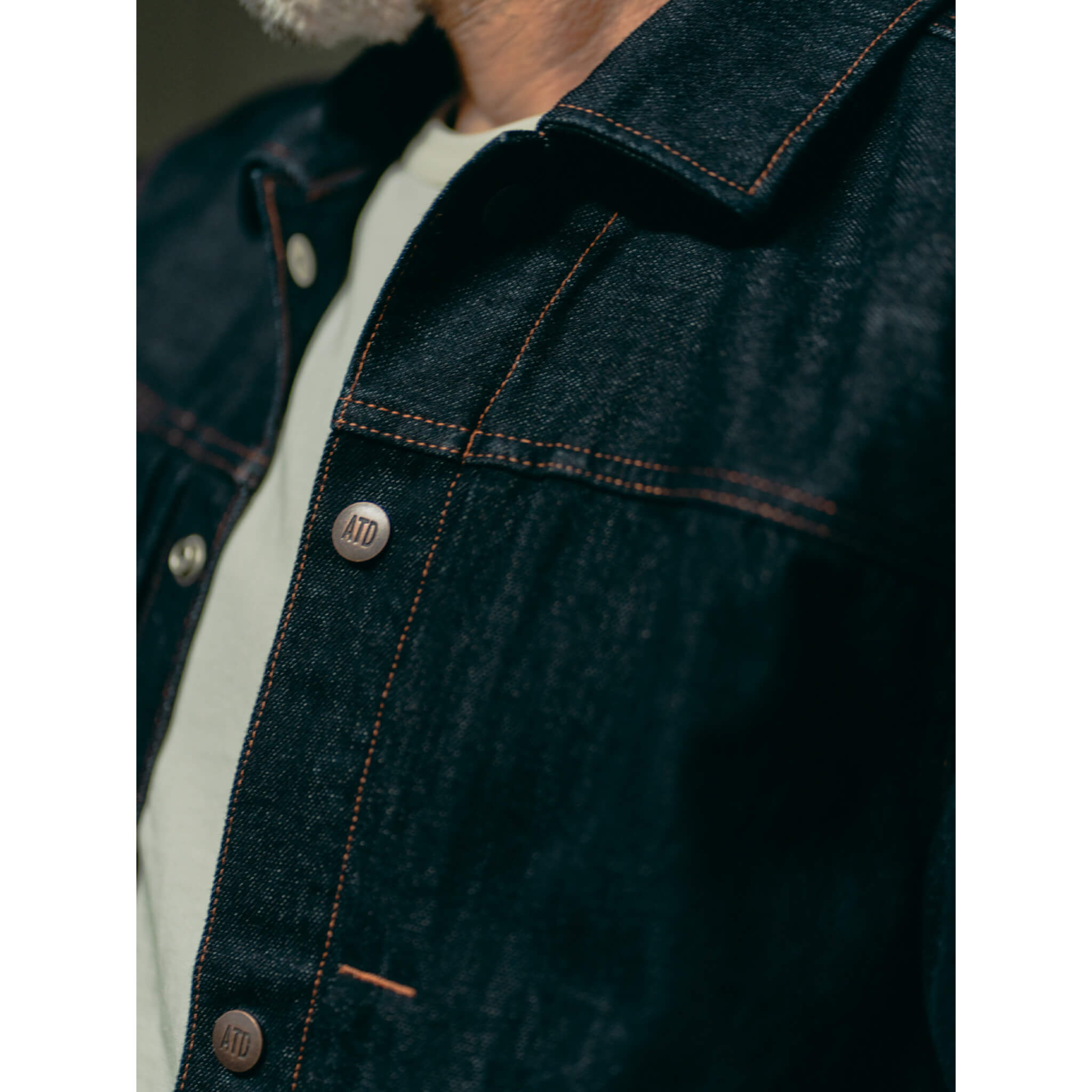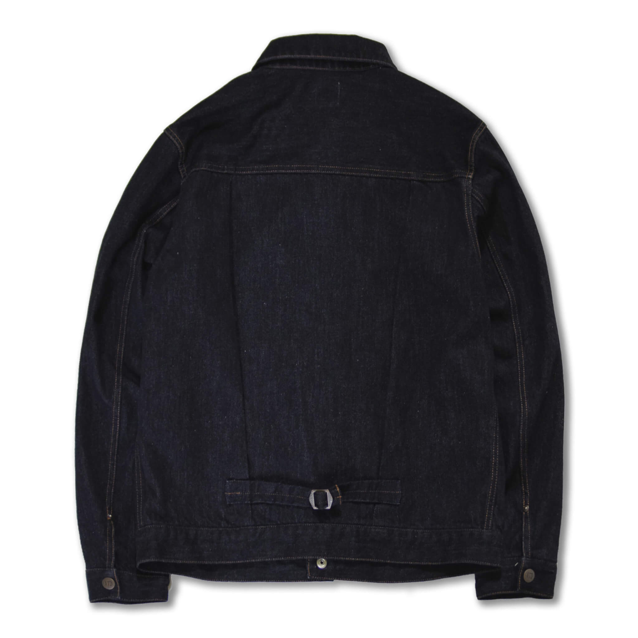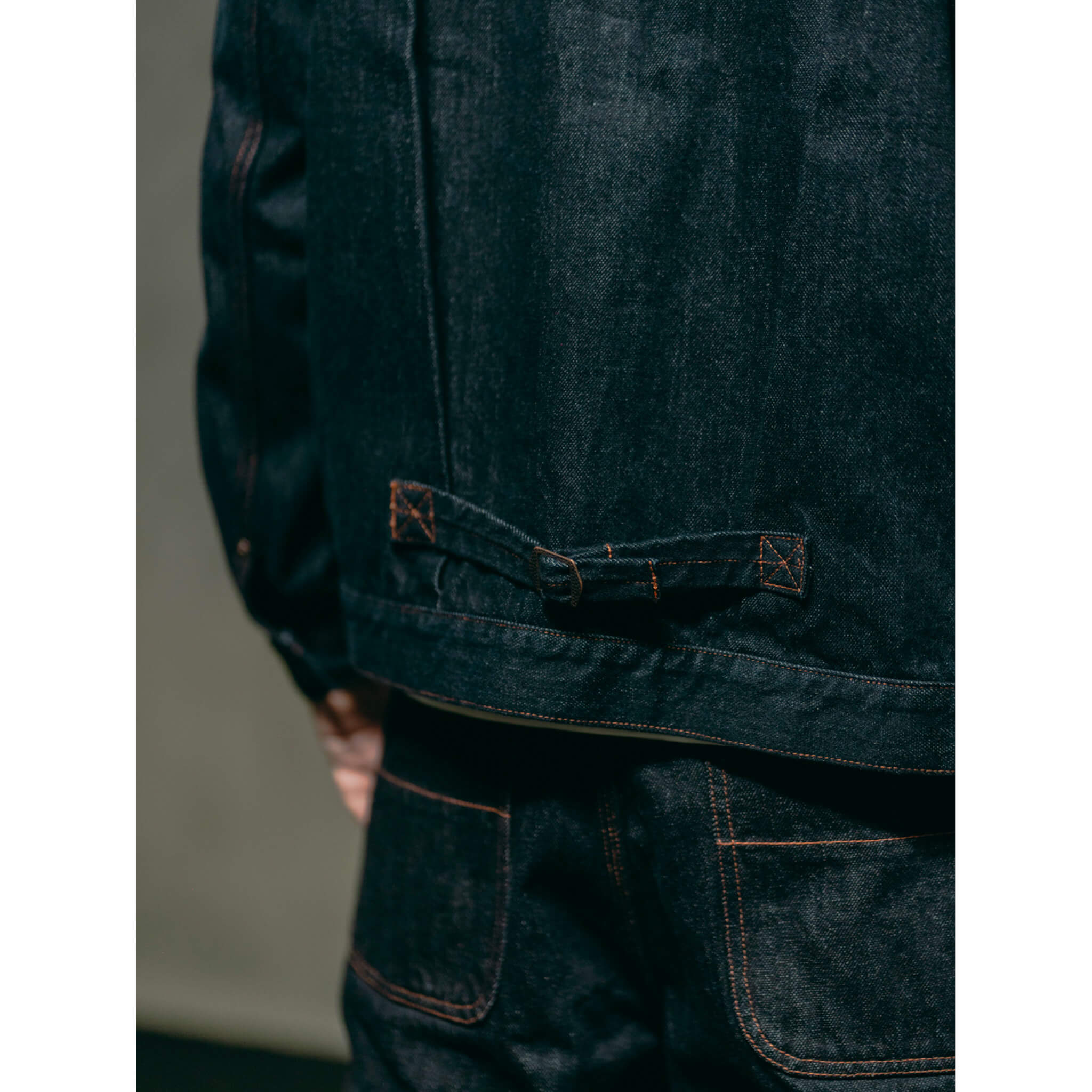 1950年代のストアブランドをデザインソースに製作。フロントのATDスナップボタン、プリーツ留め、UFOリベット等、古き良きクラシックスタイルのデニムジャケット。(オリジナルスナップボタン使用)