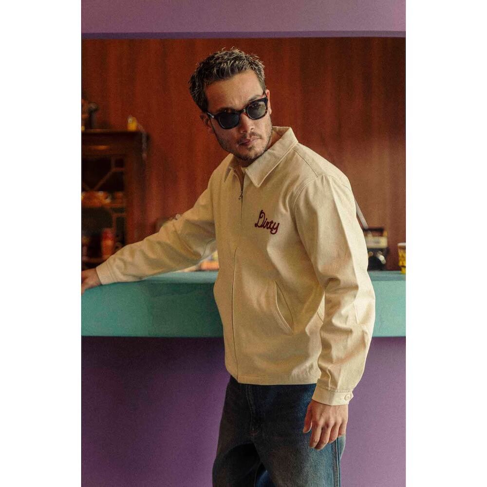 1980年代のサブカルチャーアートから着想を得た、スカルスパイダーのバックプリントが印象的な一枚。デザインを手がけたのは、親交深いロサンゼルスに拠点を置くアパレルショップ〈LANDERS〉の Chloe。胸元にはDirtyのチェーン刺繍。
