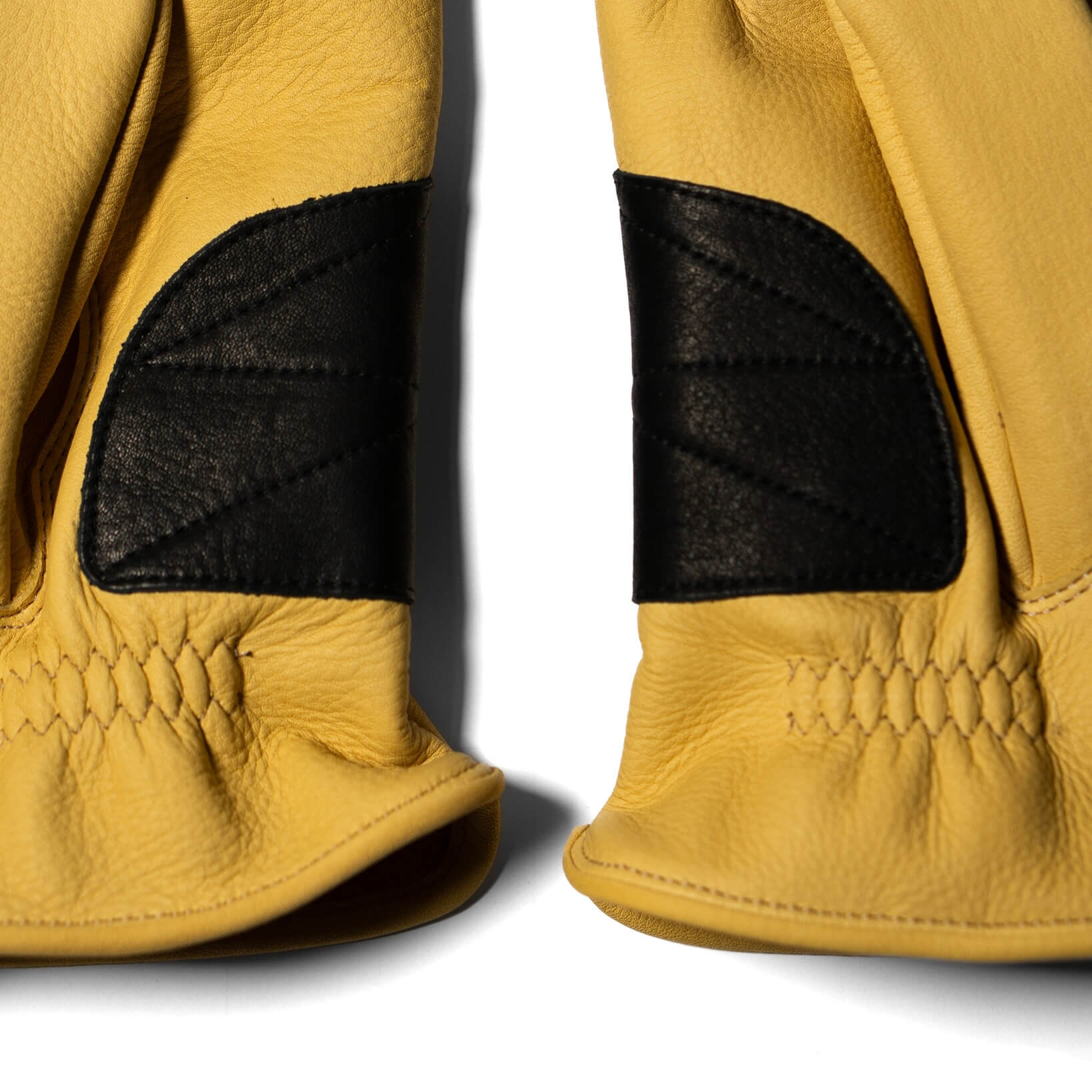 当時のモトクロスグローブは手の甲から指の部分のプロテクターはゴム製だったが耐久性とスタイルを重視し、同革を採用。