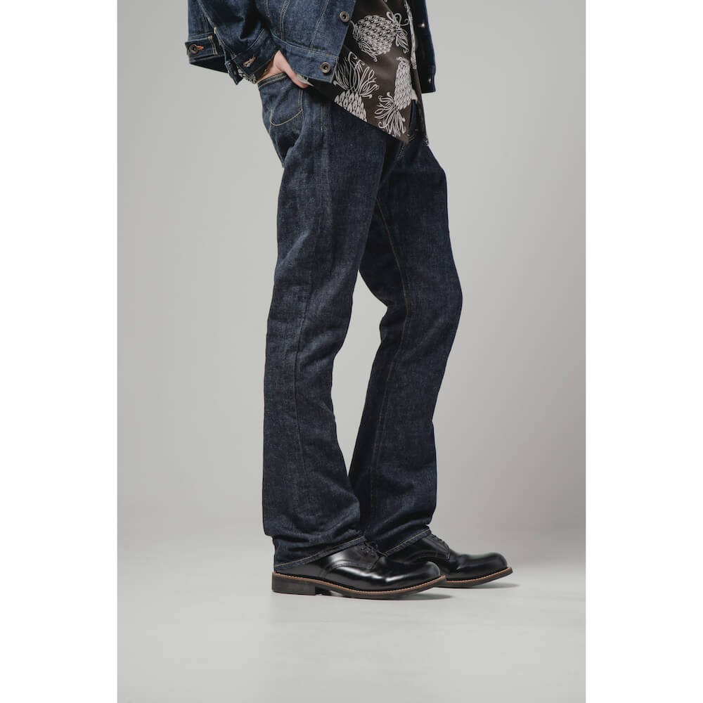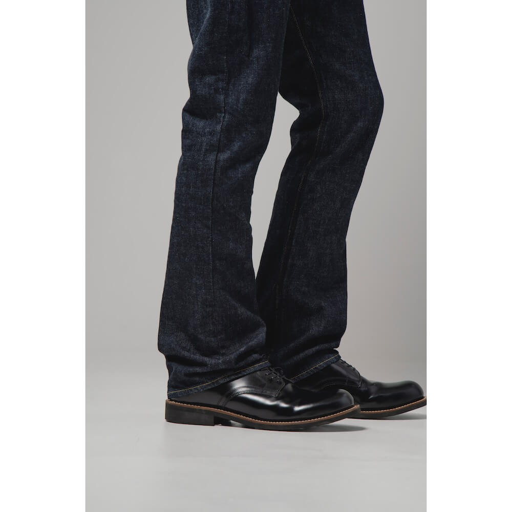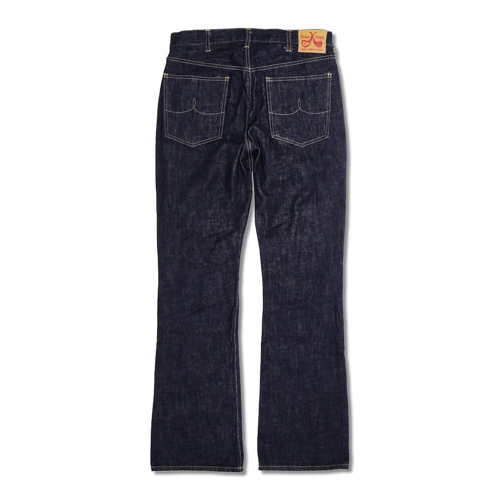 DRESS HIPPYの定番「EAST GENT DENIM」をベースに、ブーツカットシルエットに再構築。裾に向かって極端な広がりは見せず、ブーツに合うシルエットを求めた一本。ブーツカットのモデルにはDRESS HIPPYオリジナル紙パッチを採用。