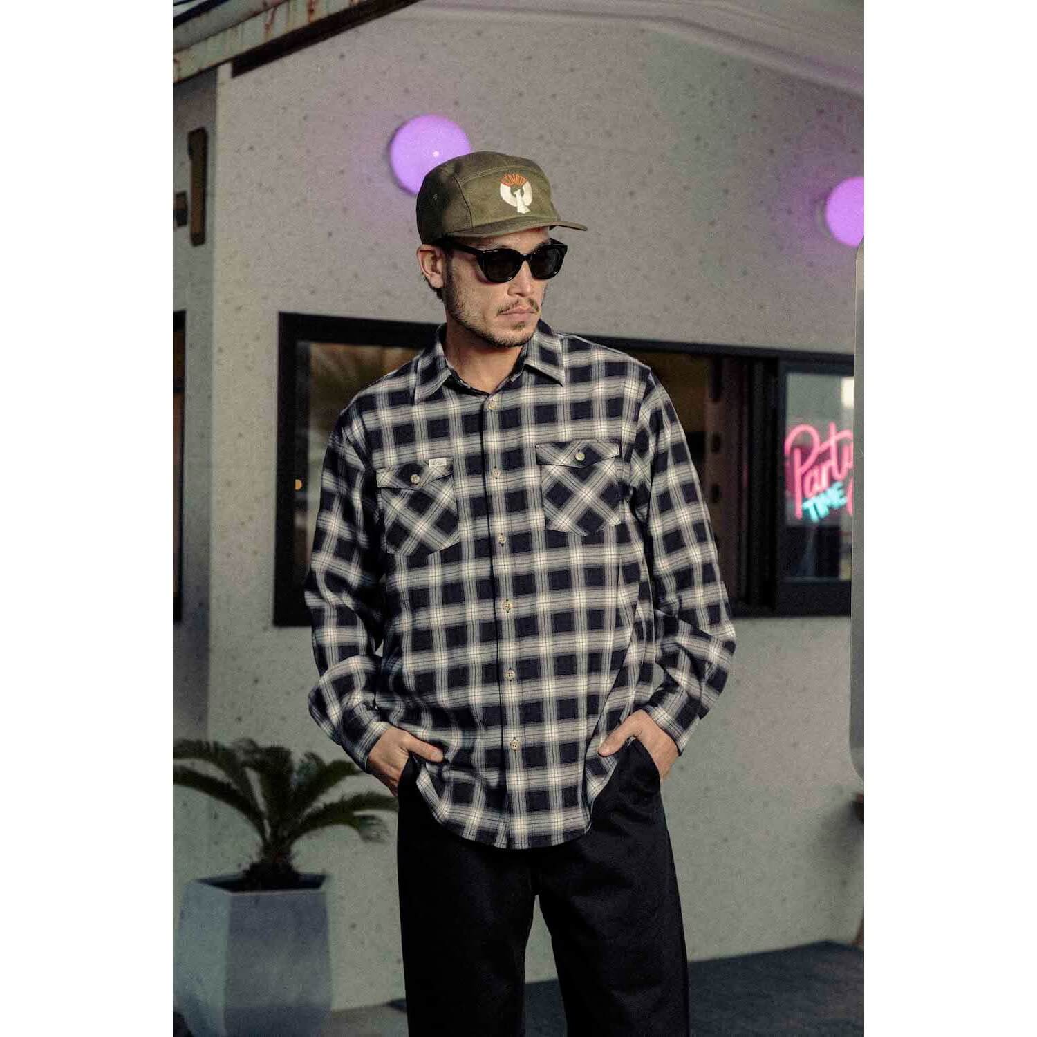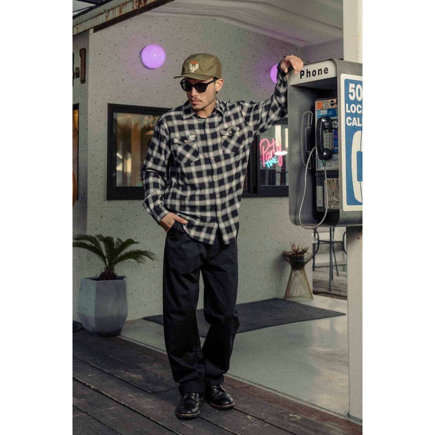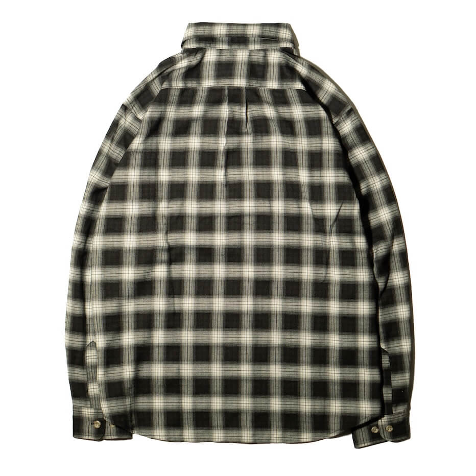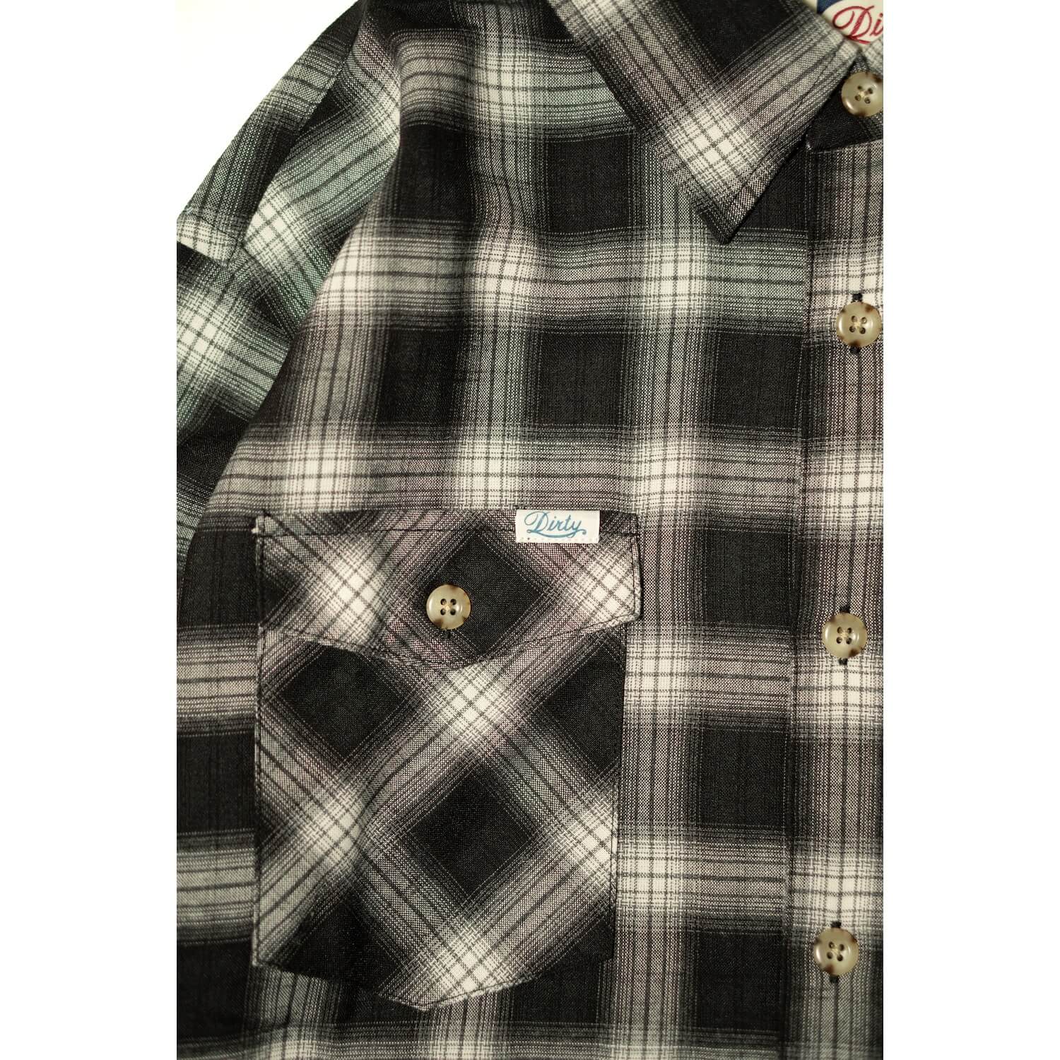 アメリカンカジュアルの定番アイテム、オンブレチェックシャツ。ポリエステル×レーヨンで、繊細に織り上げられたオンブレ柄の生地は、軽やかで滑らかな肌触りが特徴。両胸にはフラップポケットを備えアクセントに「AT DIRTY」のピスネームを配備。 首元はスタンダードなレギュラーカラー仕様でデイリーに活躍する一着。