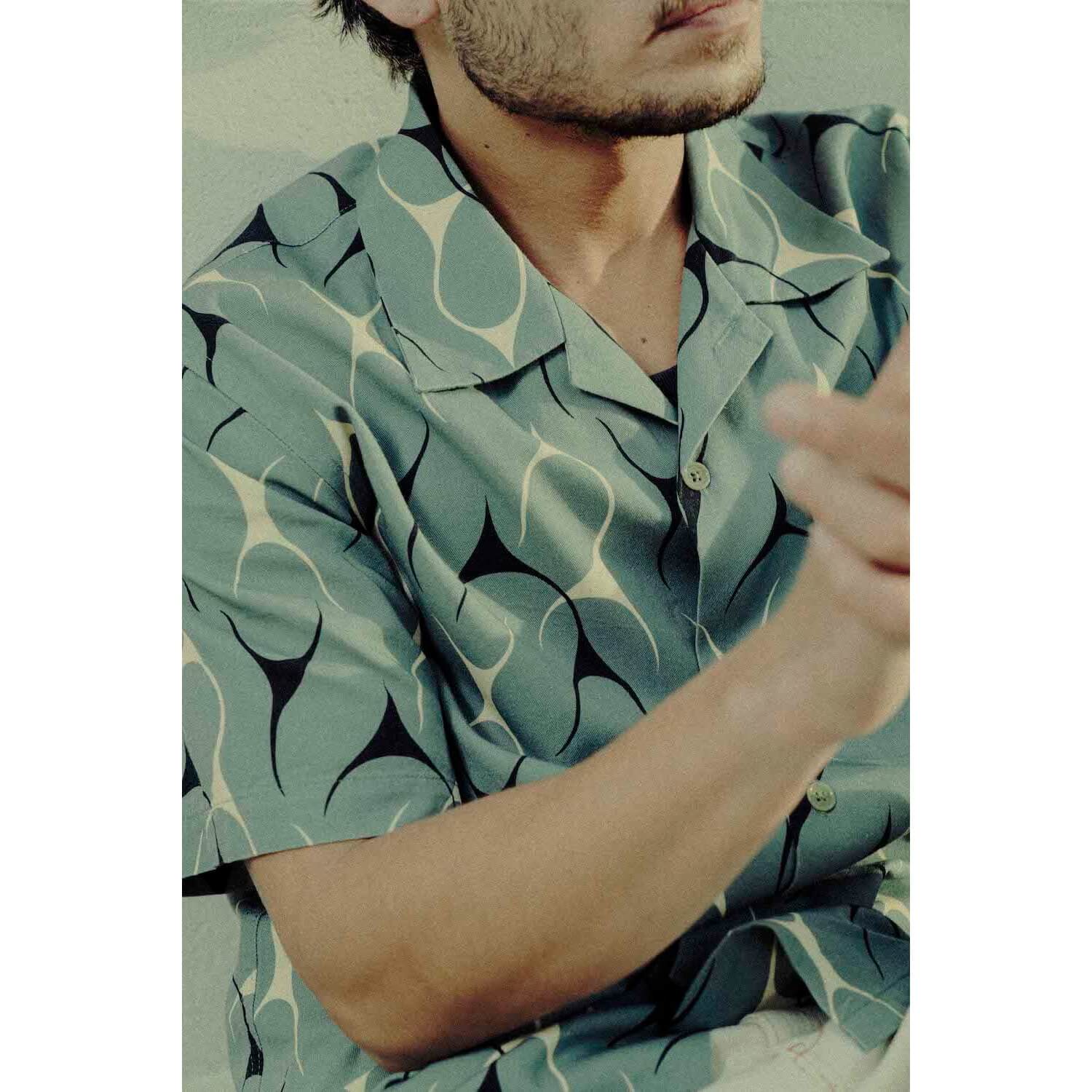 AT DIRTYオリジナルの“フレイムス”パターンを総柄に落とし込んだ一枚。モーターカルチャーと、どこかヴィンテージ感を纏う、まさにAT DIRTYらしいアイテム。肌あたりが柔らかく、着心地も軽やかなコットンレーヨン生地を採用。